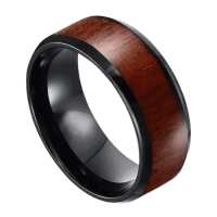 Mens Black Tungsten Wedding Ring – Wood Inlay Polished Bevelled | Engraved Personalised Band – Newman Bands – Connoisseur
