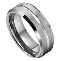 Mens Silver Tungsten Wedding Ring – Brushed & Polished Groove | Engraved Personalised Band – Newman Bands – Milan