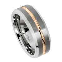 Mens Silver & Rose Gold Tungsten Wedding Ring – Brushed with Polished Edges | Engraved Personalised Band – Newman Bands – Always
