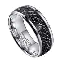 Mens Silver Tungsten Wedding Ring – Black Faux Meteorite Inlay | Engraved Personalised Band – Newman Bands – Gallant