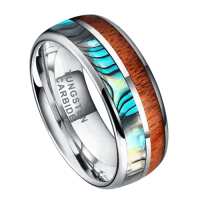 Mens Silver Tungsten Wedding Ring – Polished With Wood Inlay | Engraved Personalised Band – Newman Bands – Woodrow