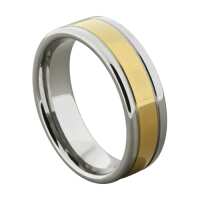 Mens Silver & Gold Tungsten Wedding Ring – Polished Gold Groove | Engraved Personalised Band – Newman Bands – Opulent