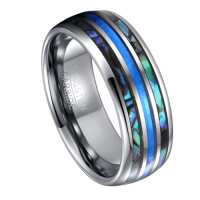 Kaleidoscope - Mens Tungsten Wedding Ring Opal and Abalone Shell Band Engraved Personalised Engagement Eternity Promise Gift