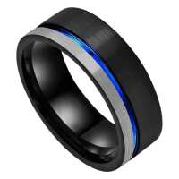 Mens Black & Silver Tungsten Wedding Ring – Polished Silver Groove | Engraved Personalised Band – Newman Bands – Paramount