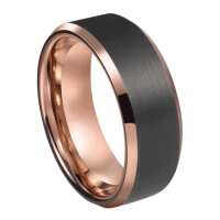 Mens Black & Rose Gold Tungsten Wedding Ring – Brushed with Polished Groove | Engraved Personalised Band – Newman Bands – Black Rose Gold