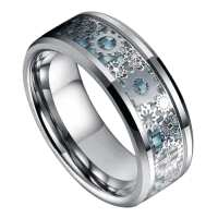 Mens Silver & Blue Tungsten Wedding Ring – Polished With Cogwheel Groove | Engraved Personalised Band – Newman Bands – Cogwheel