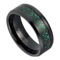 Mens Black Tungsten Wedding Ring – Green Carbon Fibre Inlay | Engraved Personalised Band – Newman Bands – Deco