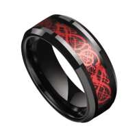 Mens Black & Red Tungsten Wedding Ring – Polished with Red Groove | Engraved Personalised Band – Newman Bands – Phoenix