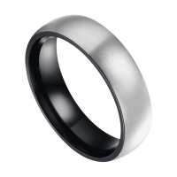 Mens Silver & Black Titanium Wedding Ring – Brushed with Polished Interior | Engraved Personalised Band – Newman Bands –Scout
