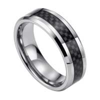 Mens Silver Tungsten Wedding Ring – Carbon Fibre Inlay Polished Edges | Engraved Personalised Band – Newman Bands – Analyser