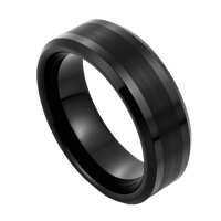Mens Black Tungsten Wedding Ring – Brushed Centre Polished Bevelled | Engraved Personalised Band – Newman Bands – Spirit