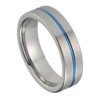 Mens Silver & Blue Tungsten Wedding Ring – Brushed with Polished Blue Groove | Engraved Personalised Band – Newman Bands – Negotiator