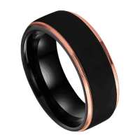 Mens Black & Rose Gold Tungsten Wedding Ring – Brushed Black With Polished Rose Gold Groove | Engraved Personalised Band – Newman Bands – Chase