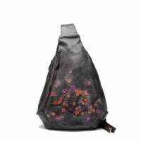 Women's Brooklyn Embossed Leather Backpack Sling Bag, Dark Gray/Green Dark Gray