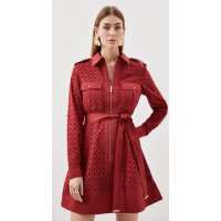 Petite Eyelet Cotton Mix Zip Woven Mini Dress - Rust