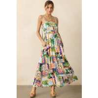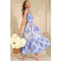 In The Sand Sky Blue Tropical Print Maxi Dress S / Sky Blue