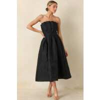 The Genevieve Black Jacquard Strapless Midi Dress S / Black