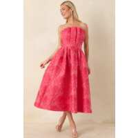 The Genevieve Hot Pink Jacquard Strapless Midi Dress S / Hot Pink