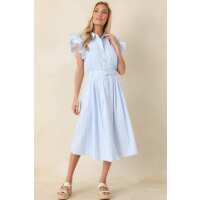 Simple Statement Sky Blue and White Stripe Button Front Midi Dress S / Sky Blue