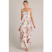 Petal Parade White Floral Tiered Maxi Dress XS / Red