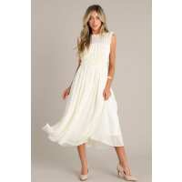 Graceful Gathering Ivory Sleeveless Midi Dress S / White