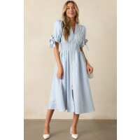 Afternoon Tea Sky Blue Stripe Zip Front Midi Dress S / Sky Blue