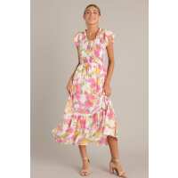 Bloom Burst White Multi Floral Midi Dress S / White