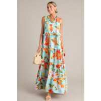 Blossom Breeze Sky Blue Multi Floral Maxi Dress S / Multi