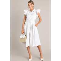 Simple Statement Taupe and White Stripe Button Front Midi Dress S / Taupe
