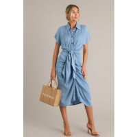 So Indecisive Chambray Button Front Midi Dress S / Blue