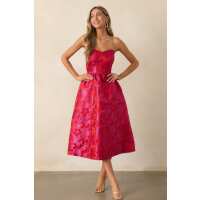 Midnight Magic Red & Pink Jacquard Midi Dress XS / Pink