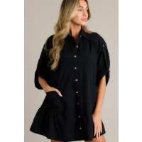 Posh Vision 100% Cotton Black Button Front Mini Dress S / Black