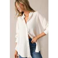 Much To Do White Button Front Long Sleeve Bodysuit S / White
