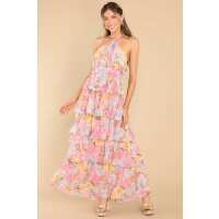 Lost In My Eyes Pink Floral Maxi Dress S / Pink