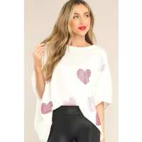 Locking Eyes White & Pink Heart Oversized Tee S / White
