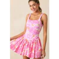 Garden Party Hot Pink & Orange Floral Pleated Tennis Dress S / Hot Pink