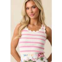 Shay Lantana Pink Stripe Cotton Scallop Tank XS / Pink