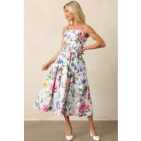 Colette Dream Garden Floral Cotton Belted Midi Dress XS / White