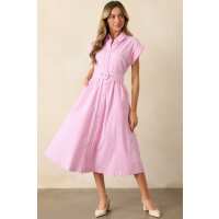 Gia Peony Pink Stripe Belted Cotton Midi Dress XS / Pink