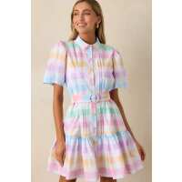 Prescott Pastel Plaid Cotton Shift Dress XS / Multi
