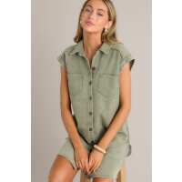 Stop & Stare Olive Green Denim Button Front Mini Dress S / Olive Green
