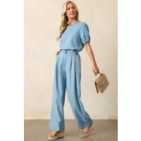 On Second Thought Blue Chambray Puff Sleeve Top XS / Blue