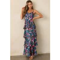 Petal Parade Navy Floral Tiered Maxi Dress XS / Navy