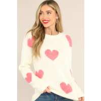 Simply That Ivory & Pink Heart Sweater S / White