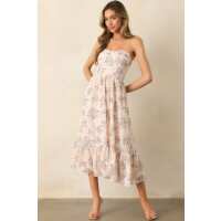 Honey Bee Pink Floral Ruffle Midi Dress S / Pink