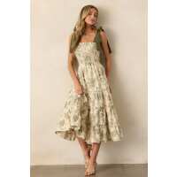 Wildflower Whisper 100% Cotton Ivory Green Floral Midi Dress S / Green