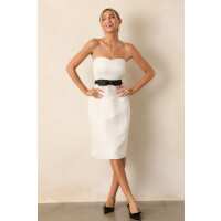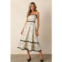 Whispers Of Paris Ivory Jacquard Strapless Midi Dress S / Ivory