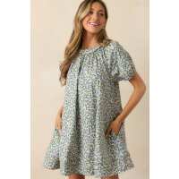 Stories Unfolding Dusty Blue Floral Cotton Mini Dress S / Dusty Blue