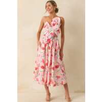 Caught In Time Pink Floral Print Cotton One Shoulder Maxi Dress S / Pink