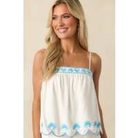 Moments That Make You White Embroidered Scallop Hem Crop Top S / White